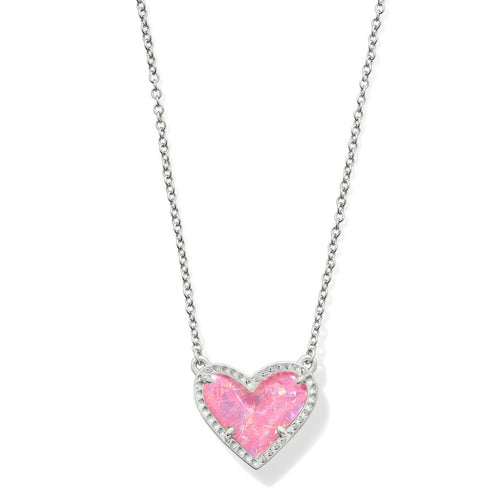 Ari Heart Silver Pendant Necklace in Pink Iridescent