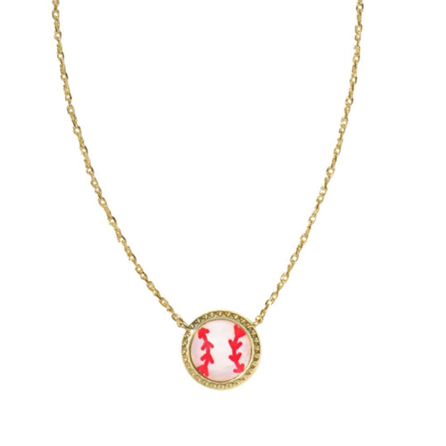Baseball Gold Short Pendant Necklace-Mother of Pearl
