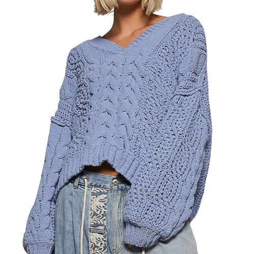 V-Neck Chenille Cable Knit Sweater