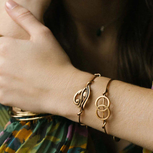 &LIVY Vesica Piscis Symbol Wrap Expandable Bangle-Antique Gold
