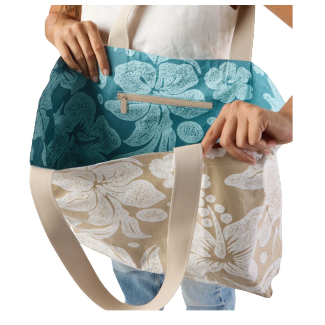 The Aloha Collection Holo Holo in Breezy is the ultimate reversible tote for both style and practicality. With an open-top design, this bag measures 23" W x 13.5" H (expanded to 17.5") and features 2" wide nylon straps with a 13" strap drop length for a comfortable carry.