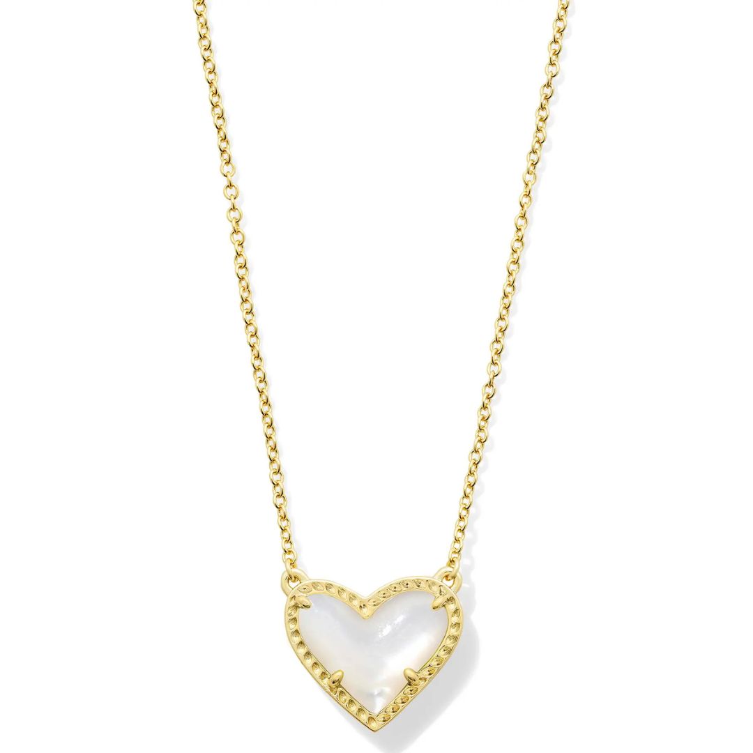Feminine and classic with an asymmetrical design, the Ari Heart Gold Pendant Necklace in Ivory Mother-of-Pearl is our new obsession. Layer it or let it shine on its own—either way you'll be hearing "Where'd you get that?" every time you wear this pendant necklace out.