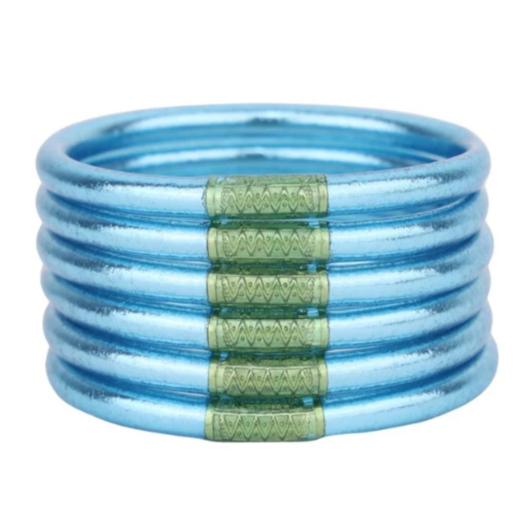 Azure is perfect combined with Silver AWB, representing a wave and its white foam. Bring in Marine AWB and you have the shallow waters combined with deep ocean mysteries. And of course for an over-the-top ode to blue combine Azure, Marine & Plume AWB for the most outrageously beautiful wristscape of blues.