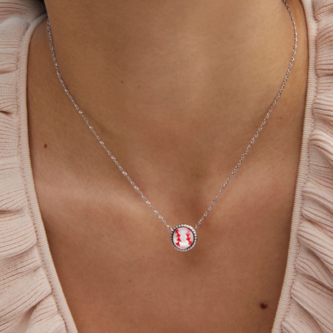 It’s the game day-ready pendant necklace that truly hits a home run. The Baseball Silver Short Pendant Necklace in Ivory Mother-of-Pearl features a playful baseball shape complete with red enamel stitch detailing. Layer it with a necklace in your team’s colors and you’ll have all your bases covered.
