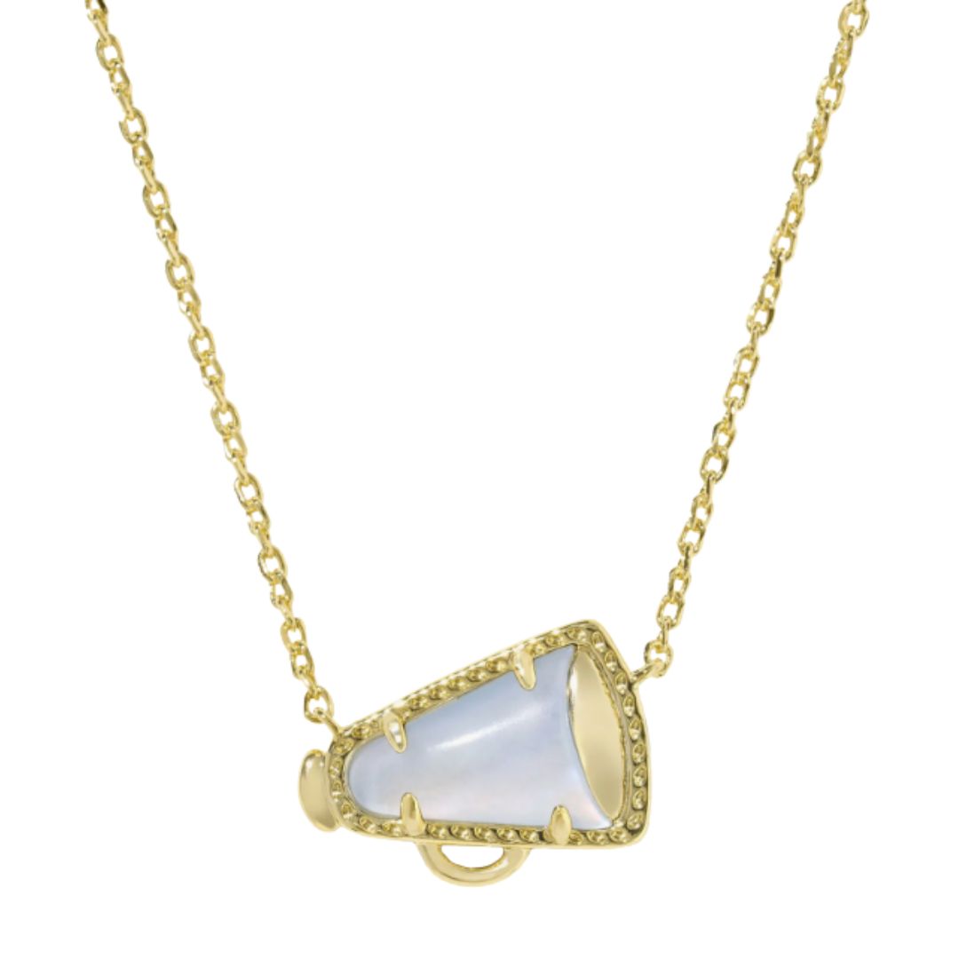Give me a K! Give me an S! Give me a Cheer Gold Short Pendant Necklace! Minimal but full of cheer, this adorable megaphone pendant is framed by our signature hoofprint detailing for that special KS touch. Stack up some extra spirit and pair this pendant with styles in your team’s colors.