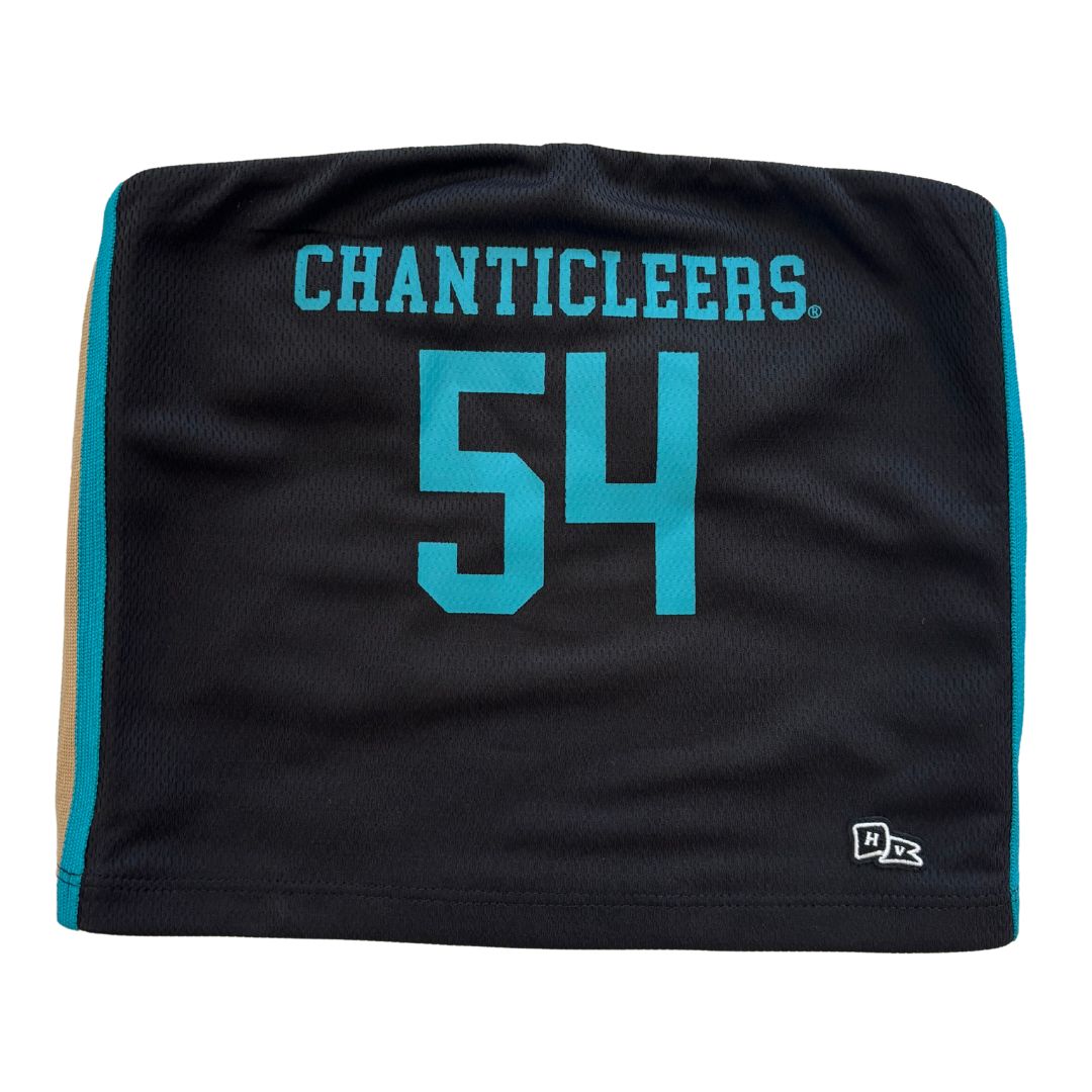 Black Chanticleers tube top with gold and teal stripe.
