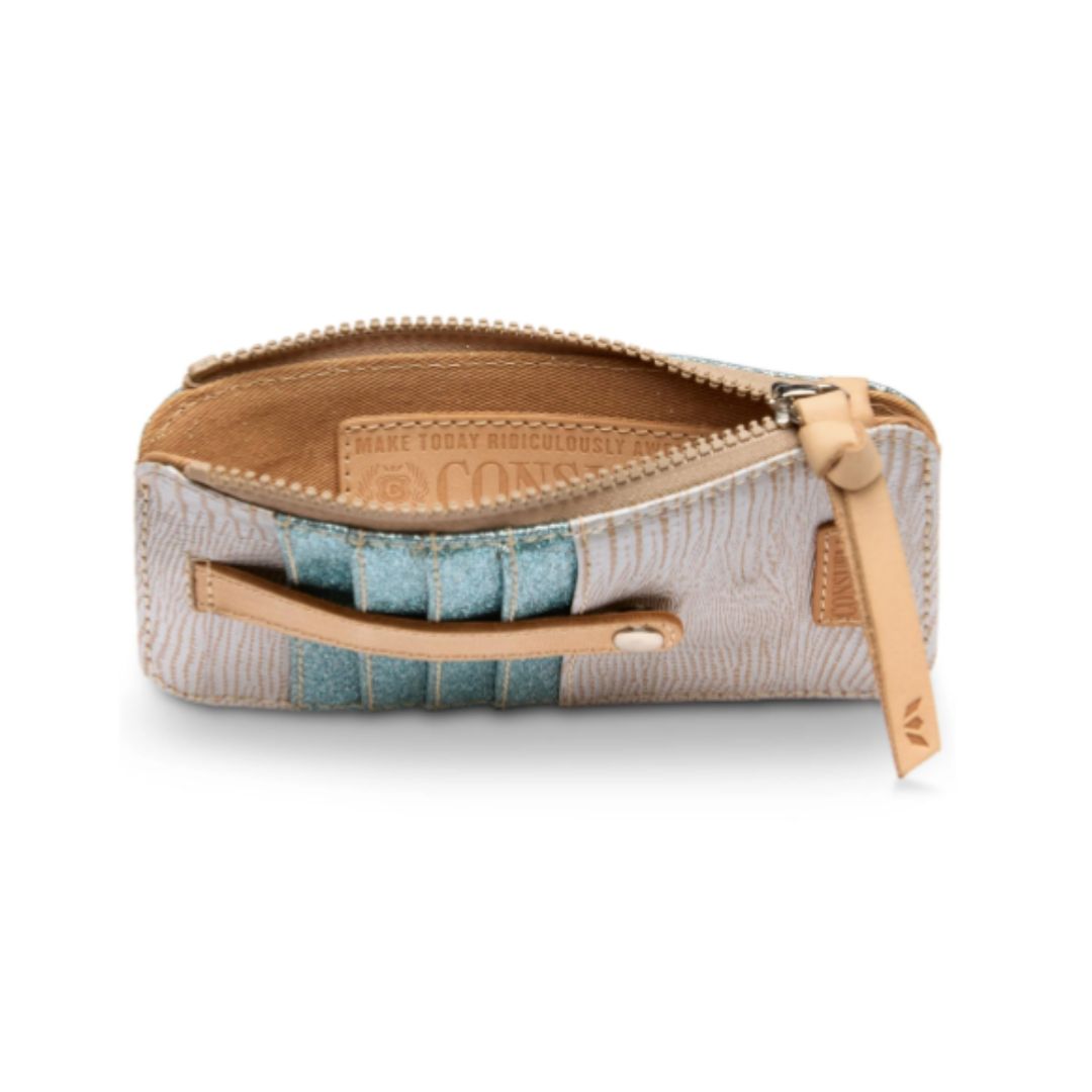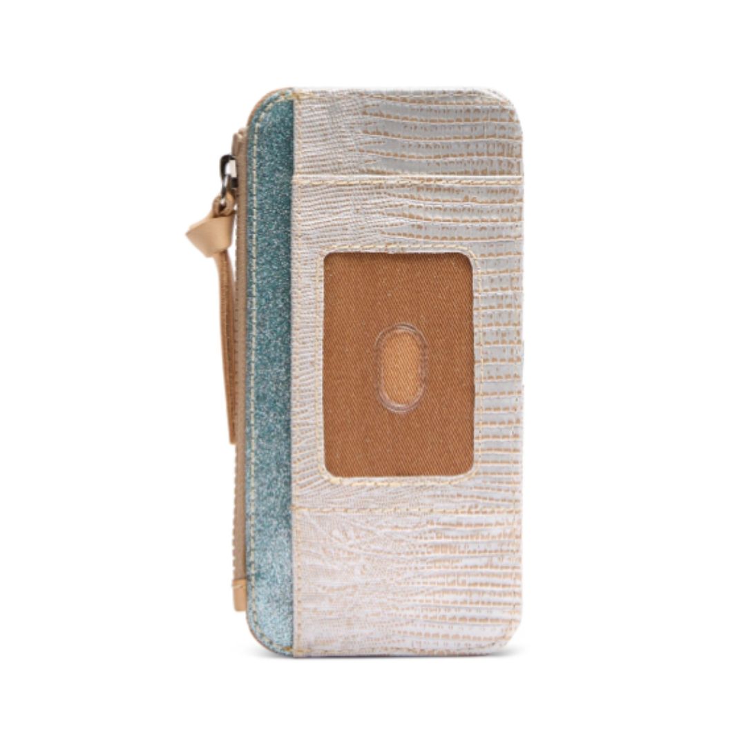 Keeping things light and easy, the card organizer is perfect for credit cards and folded bills. This sleek textured wallet’s snap-closure and zipper compartment provides security while you take on the day.