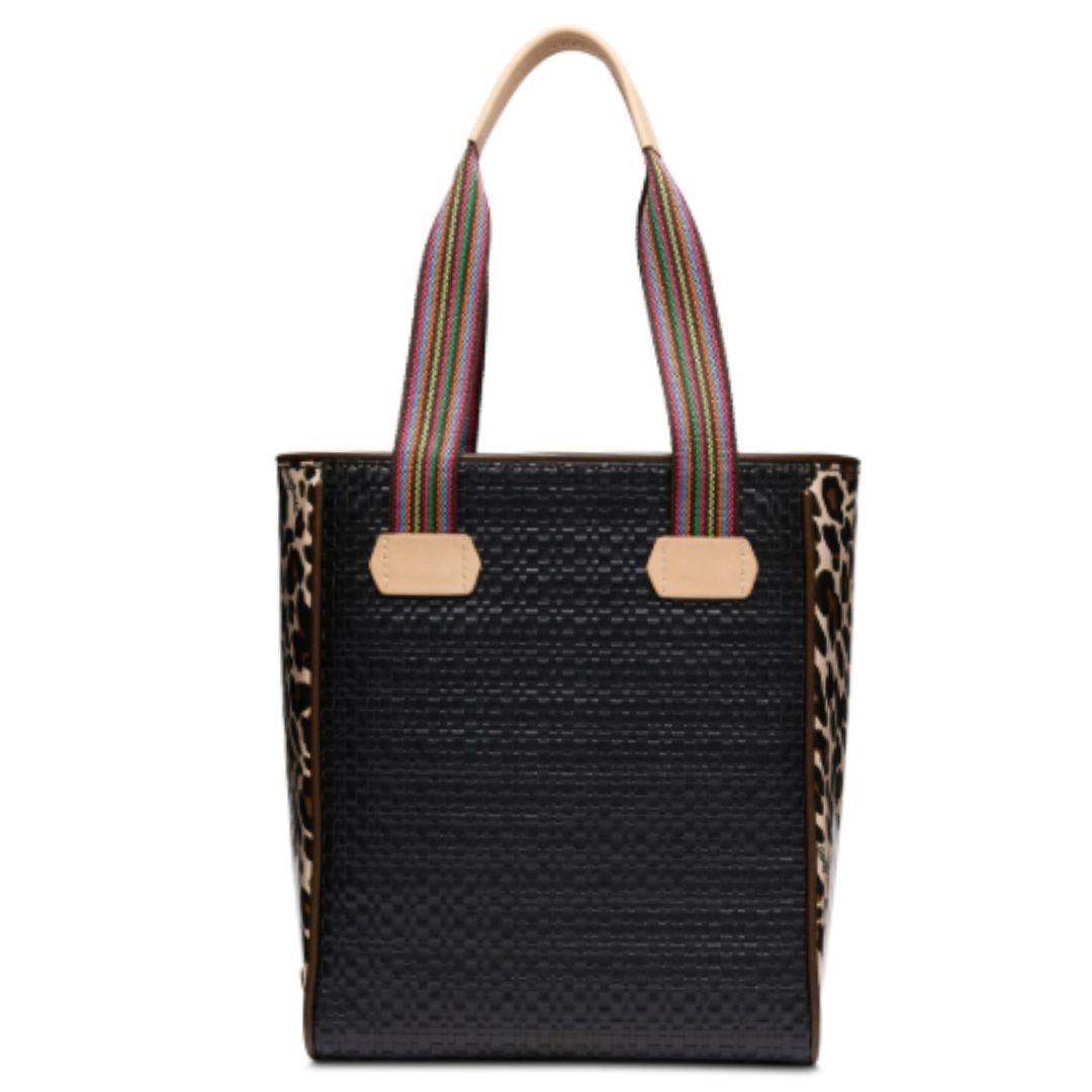The Chica Tote is the smaller version of our signature Classic Tote. With a slim silhouette perfect for life-on-the-go, the Chica carries all you need with ease. Topped with comfortable woven handles, this multi-functional tote is trimmed in natural leather and crafted to hold its shape. Our tote features a roomy interior and pockets.