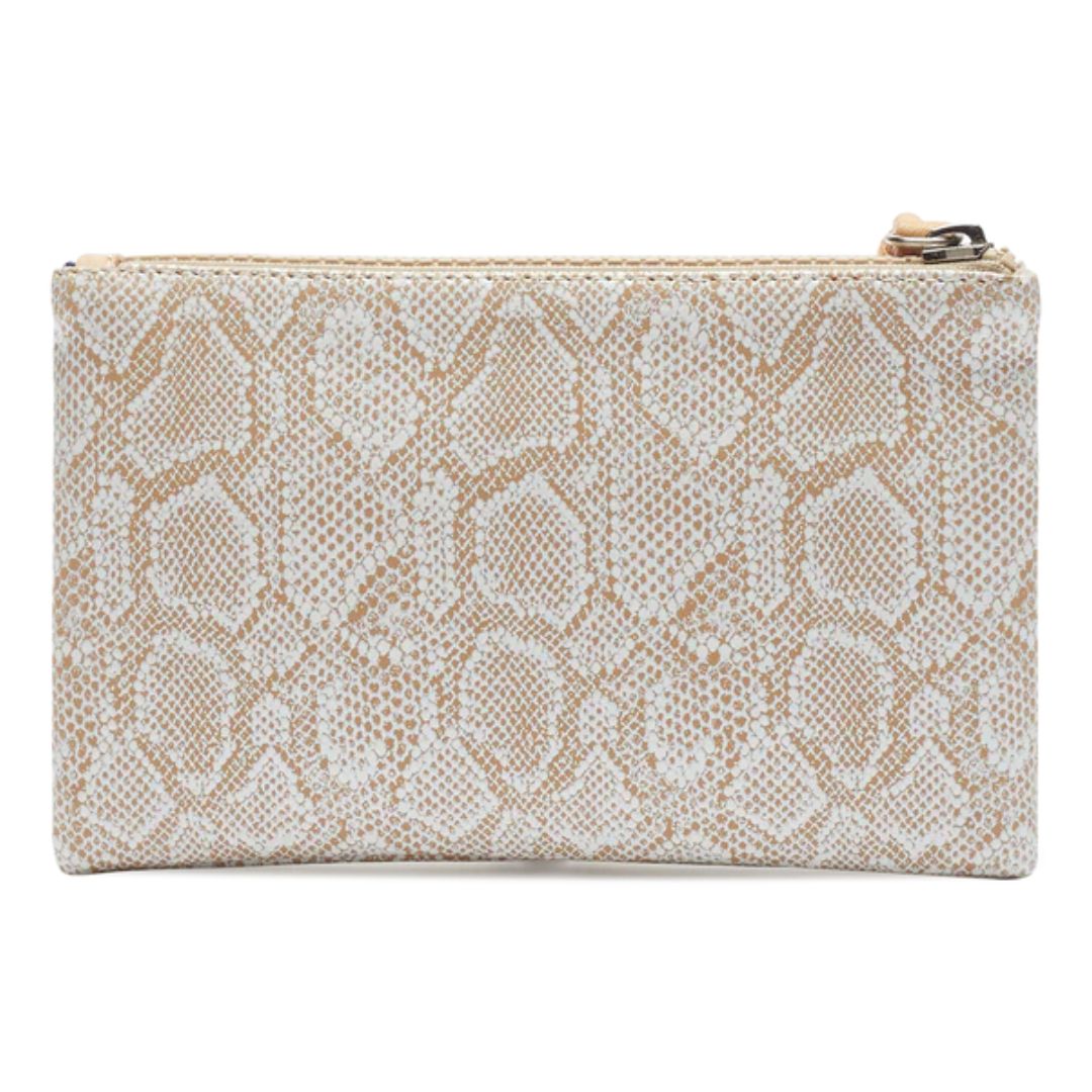 - Features our Clay embossed snake print exterior with zip side pocket