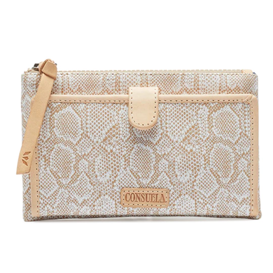 Our Clay Slim Wallet is compact in size, yet complete with all the compartments you need to stay organized! Our Clay snake print bifold is secured with a snap tab closure and filled with functional card slots and pockets.