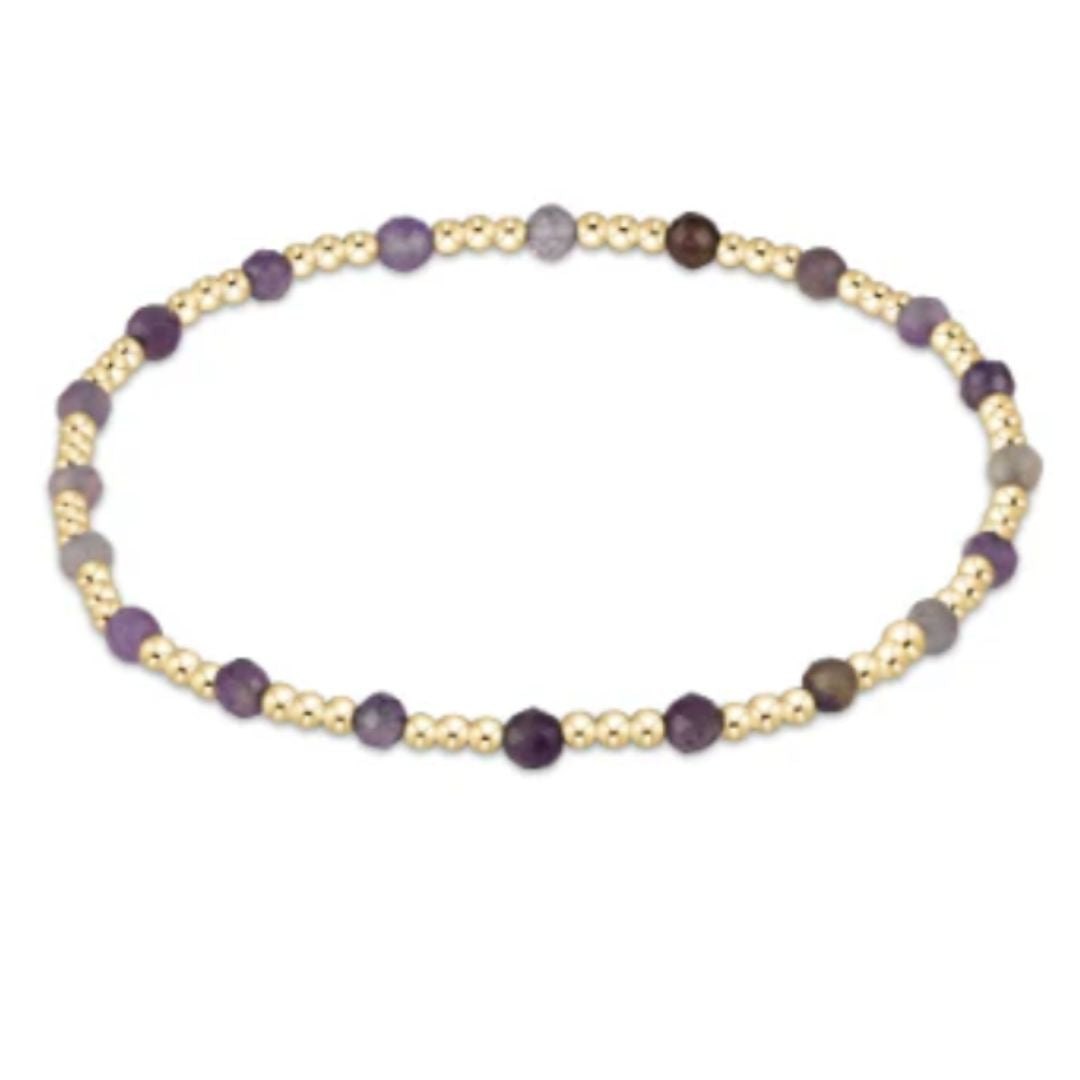 Elevate your accessory game with the Enewton - Egirl - Gemstone Gold Sincerity Pattern 3mm Bead Bracelet - Amethyst. This exquisite bracelet features 3mm gemstones and 2mm, 14kt gold-filled beads, creating a stunning combination that adds a touch of elegance to any outfit. Designed for worry-free wear, you can sleep, shower, and sweat without a second thought. Hand beaded on high-performance elastic, it offers a slight stretch for easy on-and-off convenience. Measuring 5.5 inches, this bracelet is perfect for very small wrists, making it an ideal choice for girls and teens. The Enewton - Egirl - Gemstone Gold Sincerity Pattern 3mm Bead Bracelet - Amethyst stacks beautifully with other bracelets, allowing you to create your own unique style.