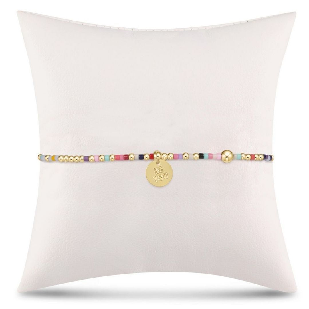 Say hello to hot mess style - Be You!Made with various colors of 2mm seed beads and 2mm 14k gold-filled beadsHand beaded on high performance elastic for a slight stretch to easily roll on and off your wristWorry-free wear‚ which means sleep, shower and sweat in itStacks well with all bracelets