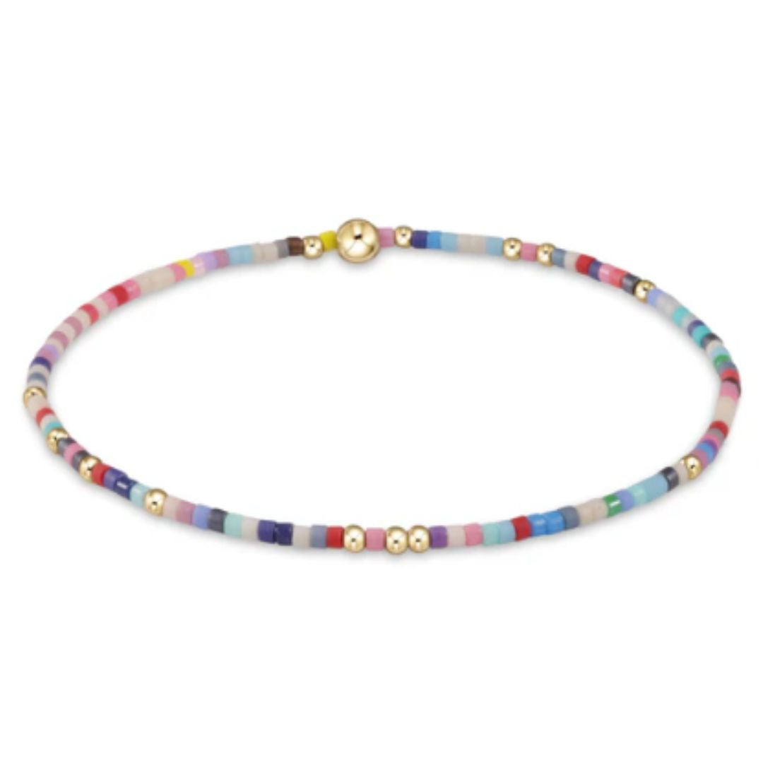 - Hand beaded on high performance elastic for a slight stretch to easily roll on and off your wrist
