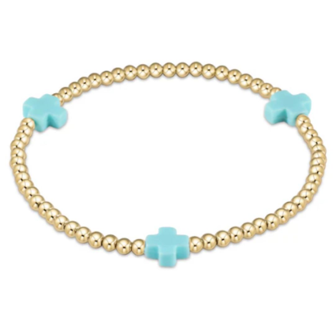 enewton Signature Cross Gold Pattern 3mm Bead Bracelet-Turquoise