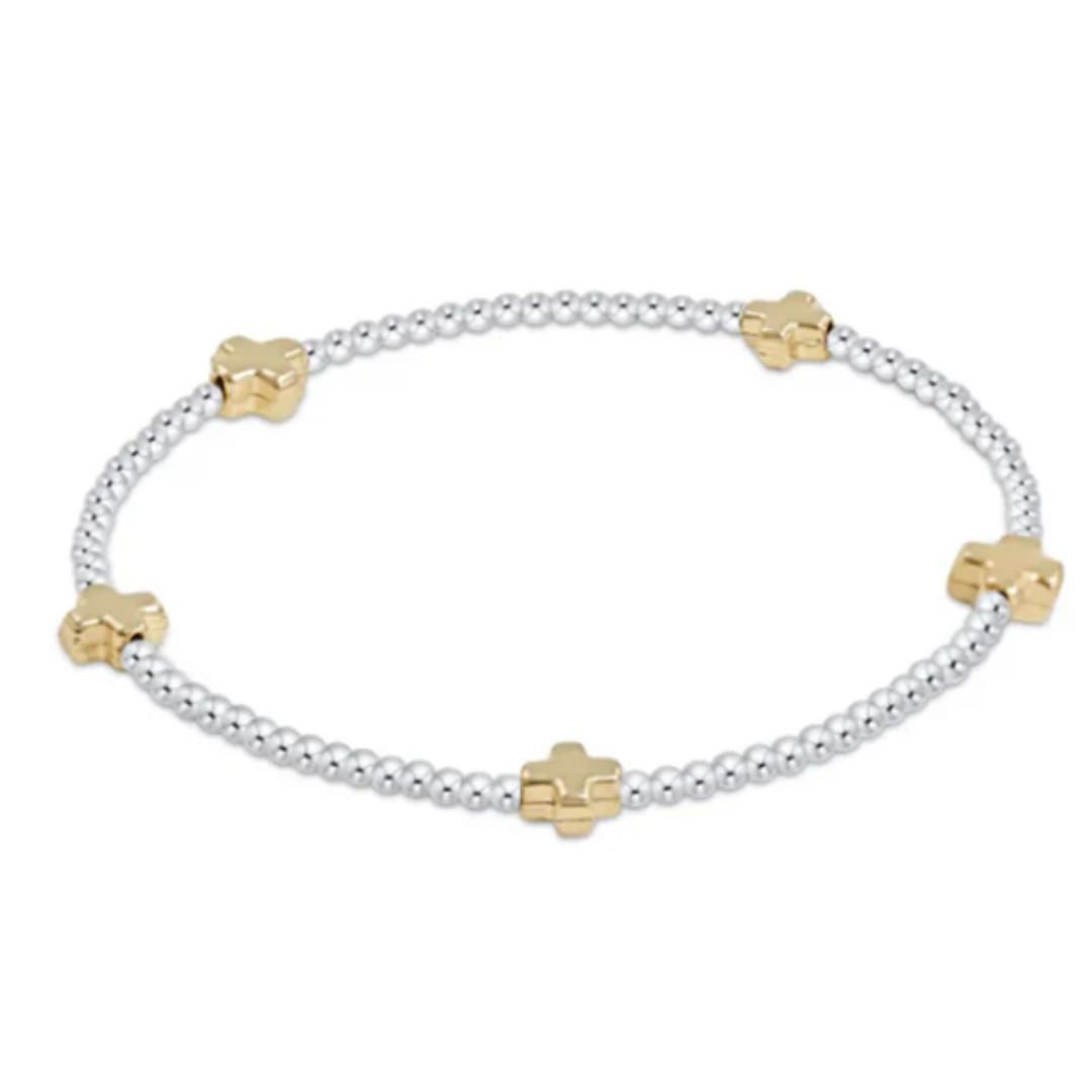 enewton Signature Cross Small Sterling Mixed Metal Pattern 2mm Bead Bracele
