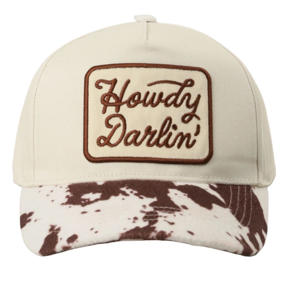 Howdy Darlin Embroidered Patch Animal Print Trucker Hat - Howdy Darlin Embroidered Patch - 5-Panel Trucker Hat - 65% Cotton 35% Polyester - Adjustable Snapback Closure - Relaxed Fit and Pre-Curved Visor *One Size Fits All - Adjustable Strap Makes Fit Comfortable.* Add some Southern charm to your outfit with this playful "Howdy Darlin’" embroidered cap. Featuring a vintage-inspired patch and bold animal print brim, this hat is the perfect mix of Western sass and modern style. The structured crown ensures a flattering fit, while the adjustable snapback closure provides all-day comfort for most head sizes. Whether you're heading to a country concert, a girls’ weekend, or just want to turn heads, this cap adds a fun, flirty touch to any look. Durable, eye-catching, and full of personality — it’s a must-have for any Western-loving fashionista.