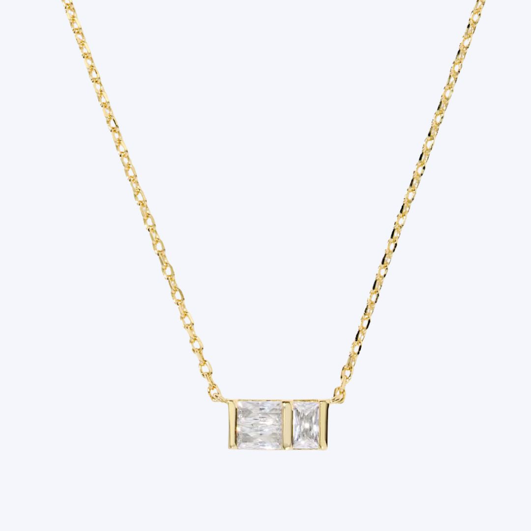 Create a subtle (and sparkly!) stack with the Jamie Gold Short Pendant Necklace. Featuring a rectangular pendant with bezel-set baguette crystal detailing and high-shine metal, this style is an easy addition to any look.