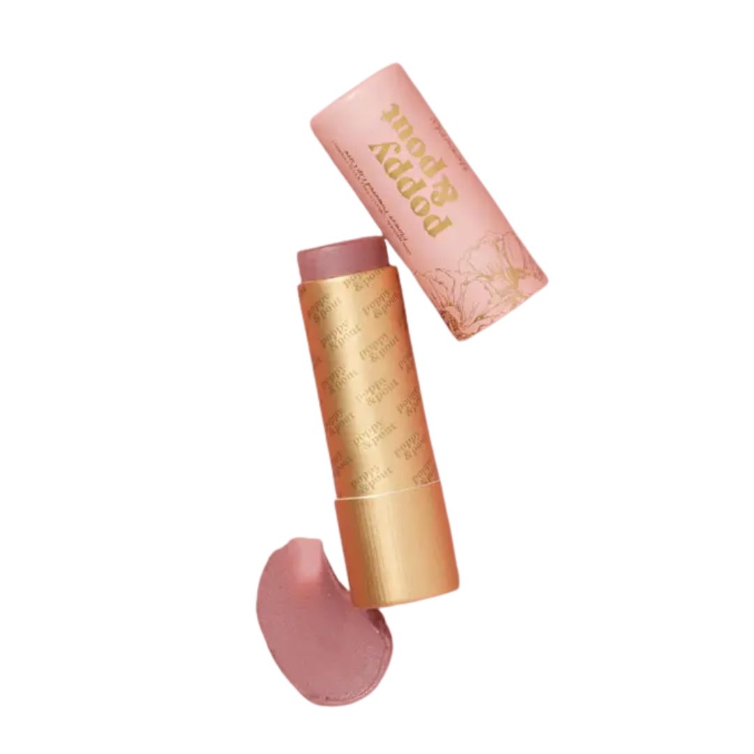Beverly is a mauvy pink lip tint. These sheer lip tints feature buildable color, so you can be as bold or as subtle as you wish. Your favorite Poppy & Pout lip balm formula, now with a subtle tint! Apply once for sheer coverage or double/triple up for a more colorful lip. All tints feature our best-selling Sweet Mint flavor! Ingredients: Cocos Nucifera (Coconut) Oil, Cera Alba (Beeswax), Helianthus Annuus (Sunflower) Oil, Mentha Piperita (Peppermint) Oil, Vanilla Planifolia Extract, Ethical Mica, Iron Oxide, Titanium Dioxide, Tin Oxide, Tocopherol (Vitamin E). 100% Natural | Cruelty-Free (Leaping Bunny Certified) | Eco-Friendly