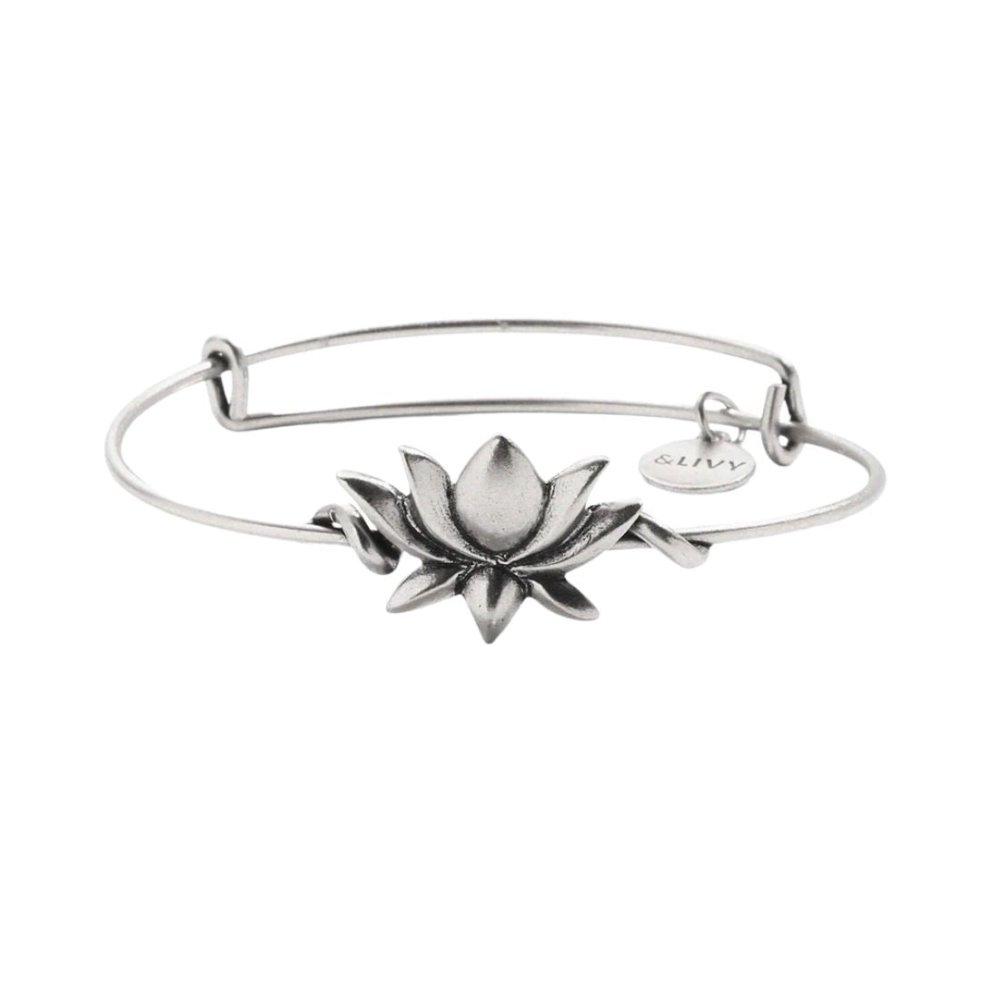 &LIVY Lotus Symbol Wrap Expandable Bangle-Antique Silver