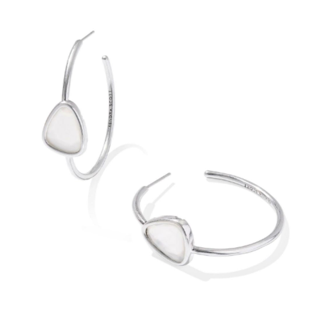 Lightweight elegance with a pop of color, the Margot Vintage Silver Hoop Earrings in Ivory Mother of Pearl feature a custom accent inspired by beautiful pebble beaches, giving your classic hoops a unique focal point.