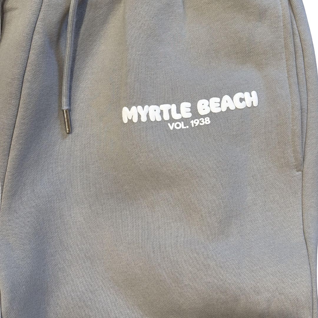 Get your cool, casual look on-point in our Myrtle Beach Sweatpants in Gray. Featuring a high elasticated drawstring waistband, elasticated ankles, side pockets, soft fleece fabric for extra comfort and puff print logo on side of leg. You can complete the tracksuit with the matching Myrtle Beach hoodie for the perfect look. Size Up...Runs Small.
