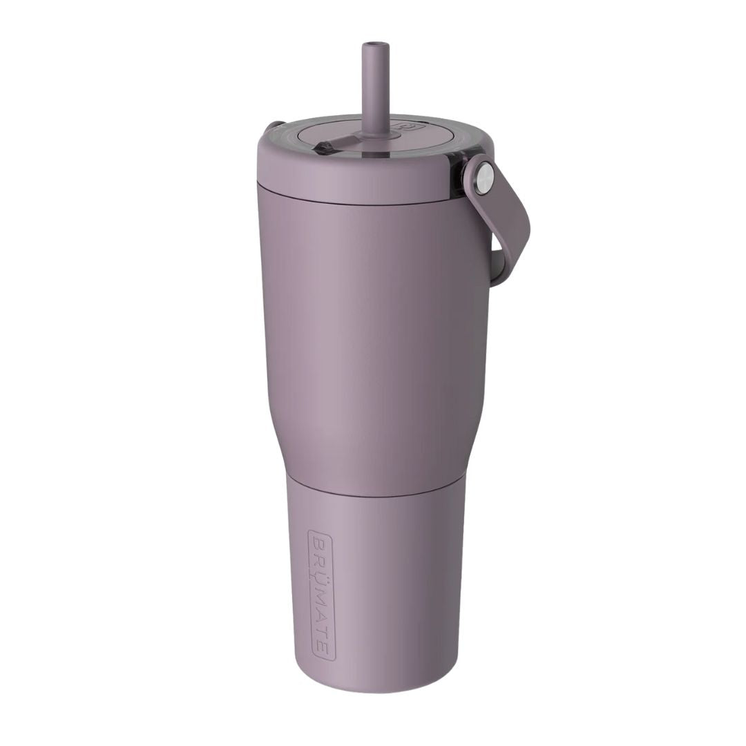 Designed for life on the go, the BruMate Resa 35 oz. – Lilac Dusk features a 100% leakproof Ü-Turn™ lid, a SoftSip™ silicone straw for a smooth, comfortable sip, and a ColdKey™ stainless steel straw to help reduce plastic use. An easy-carry handle and protective, swappable sleeve help guard against dents and dings, while advanced insulation keeps drinks cold for 24+ hours. Built for everyday convenience, most finishes are dishwasher safe for easy cleaning.