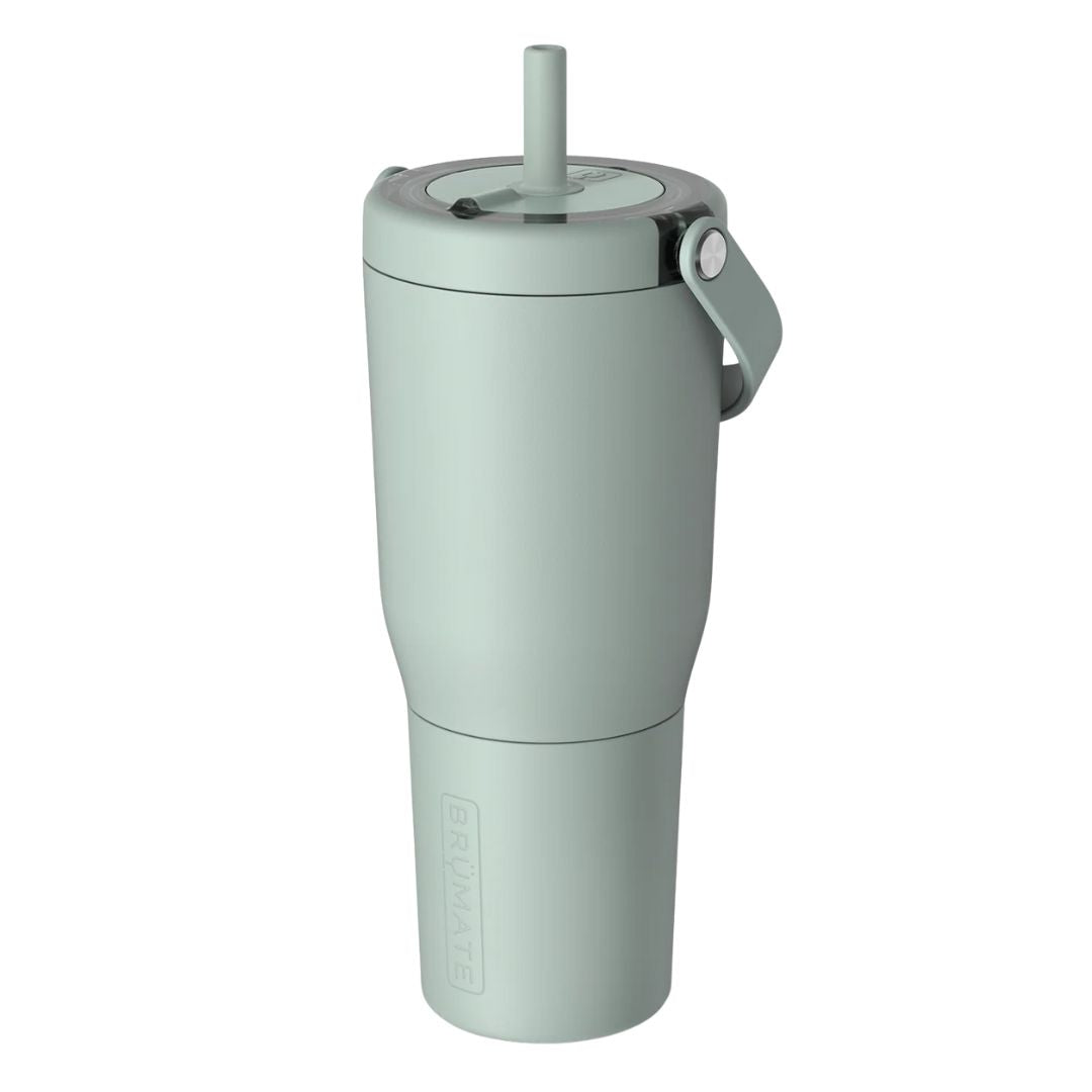 Designed for life on the go, the BruMate Resa 35 oz. – Sage features a 100% leakproof Ü-Turn™ lid, a SoftSip™ silicone straw for a smooth, comfortable sip, and a ColdKey™ stainless steel straw to help reduce plastic use. An easy-carry handle and protective, swappable sleeve help guard against dents and dings, while advanced insulation keeps drinks cold for 24+ hours. Built for everyday convenience, most finishes are dishwasher safe for easy cleaning.