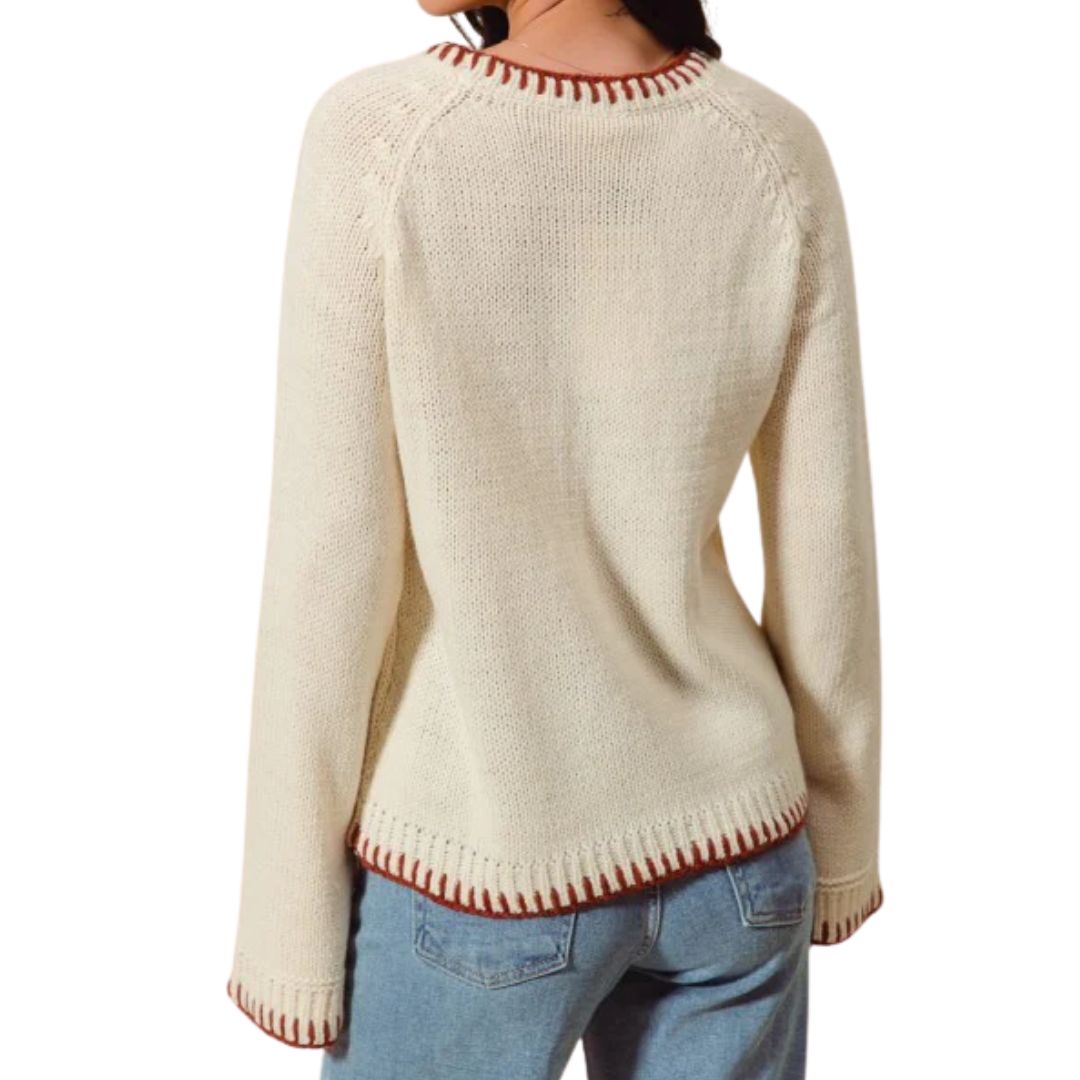 BLESSED THANKSGIVING LETTERING SWEATER TOP WITH BLANKET STITCH