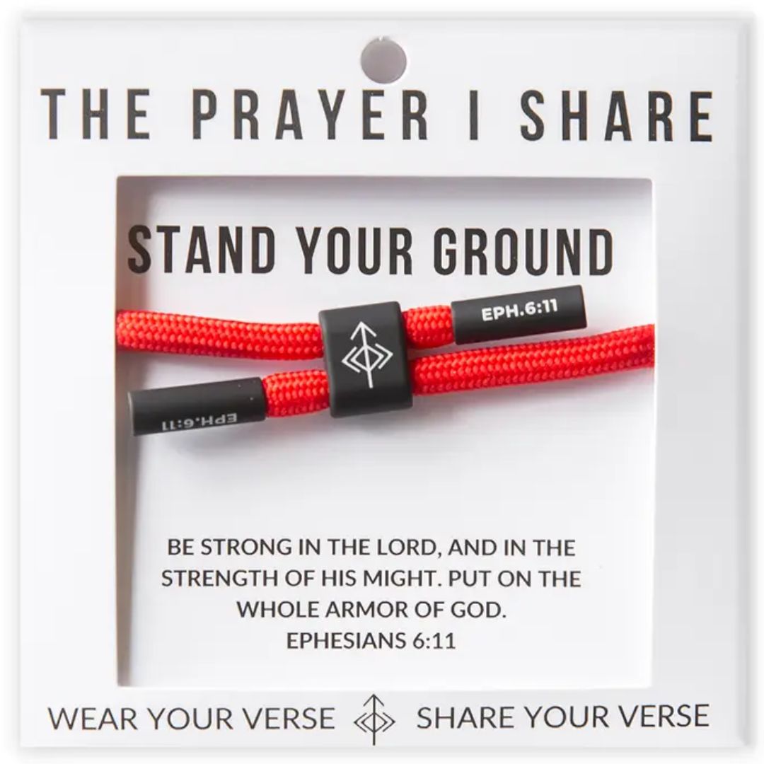 Draw strength and courage from Ephesians 6:11: “Be strong in the Lord, and in the strength of His might. Put on the whole armor of God.” The Stand Your Ground bracelet combines rugged style with a powerful message, serving as a daily reminder to live with faith and resilience. Crafted from durable grey polyester cord with silicone-coated alloy accents, it’s waterproof, sweatproof, and adjustable to fit most wrists. Perfect for active lifestyles, this unisex bracelet is more than an accessory—it’s a symbol of conviction, strength, and unwavering faith, making it a meaningful gift or personal keepsake.
