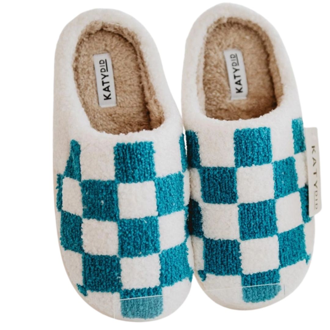 Embrace the hottest trend in comfort with our Teal Checkered Pattern Slippers, now available for wholesale from Katydid! These cozy slippers are not just an accessory; they're a fashion statement for those who value both comfort and style. The teal checker pattern adds a playful touch, making them a must-have item for lounging in luxury. Designed with both quality and trendiness in mind, these slippers are the perfect addition to your boutique's collection. Give your customers the chance to step into relaxation with a dash of personality. Elevate your inventory with our Teal Checkered Pattern Slippers, offering comfort and style that will keep your customers coming back for more. hand wash warm; hang to dry s/m fits sizes 6-7, m/l fits sizes 8-9, l fits size 10