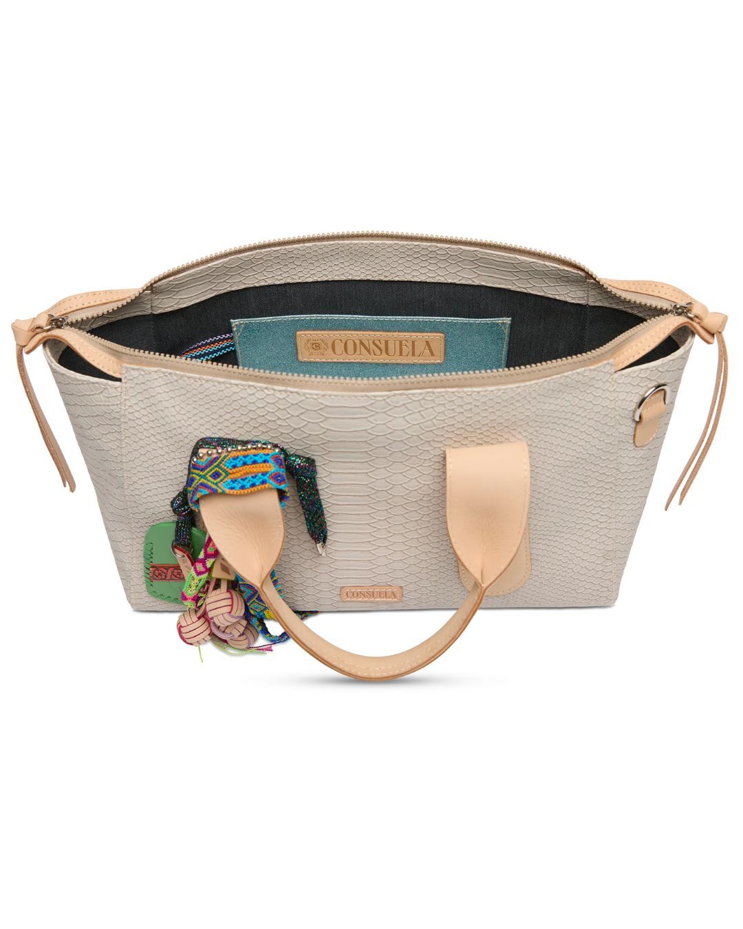 Structured, stylish, and built for wherever city life takes you — meet the Convertible City Satchel. Designed with a bold Thunderbird reptile-inspired textured exterior, this statement piece pairs modern edge with elevated detailing. Subtly padded handles, oversized anchors, and leather-trimmed zipper collars create an upscale look that works from downtown meetings to weekend wandering.