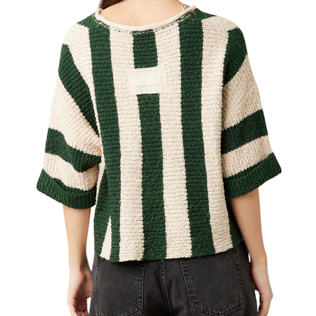 One of our best-selling sweaters, the vertical striped sweater features a loose, slouchy fit with a cropped length, vertical stripe design, V-neckline, 3/4 sleeves, and solid front and back patch detailing55%ACRYLIC,45%POLYESTER