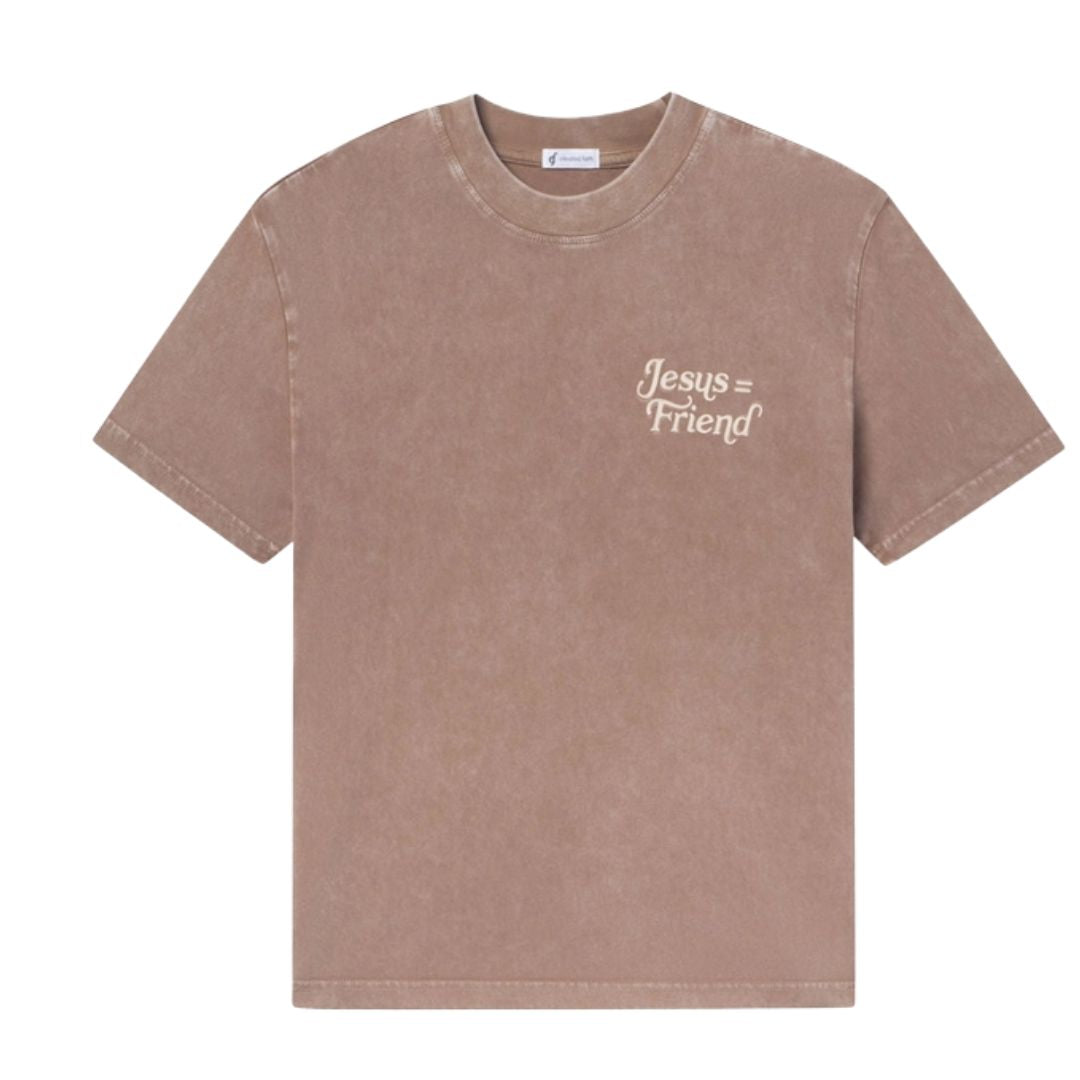 "No longer do I call you servants, for the servant does not know what his master is doing; but I have called you friends, for all that I have heard from my Father I have made known to you." -John 15:15 Size: Model is 5'11" and wearing a size Large. Fit: Relaxed, Unisex Fit Color: Cinnamon Composition: 100% Cotton Features: Garment Dyed, Super Soft, Pre-Shrunk