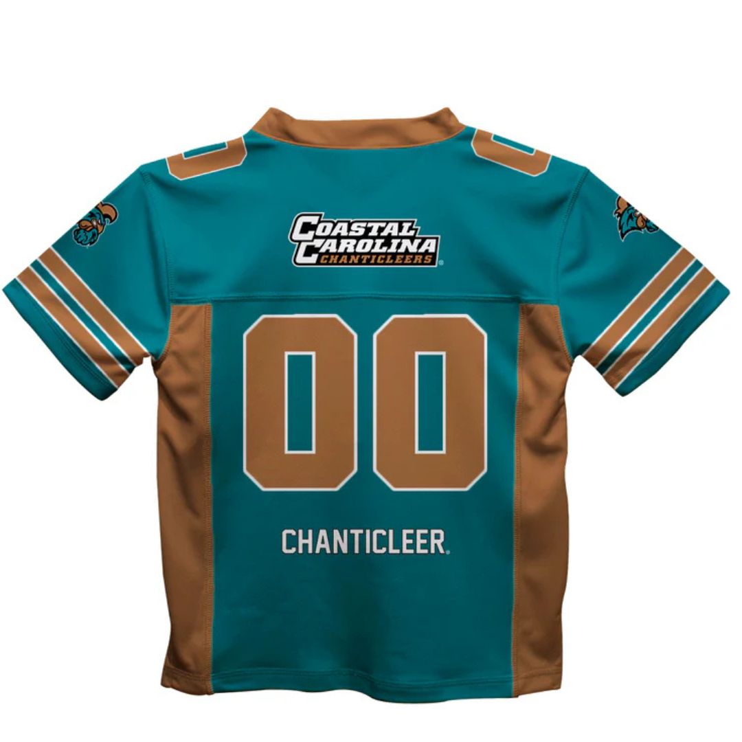 This awesome graphics, fun and game day Football Jersey features officially licensed Coastal Carolina University Chanticleers CCU colors and graphics; perfect to cheer for your favorite team.